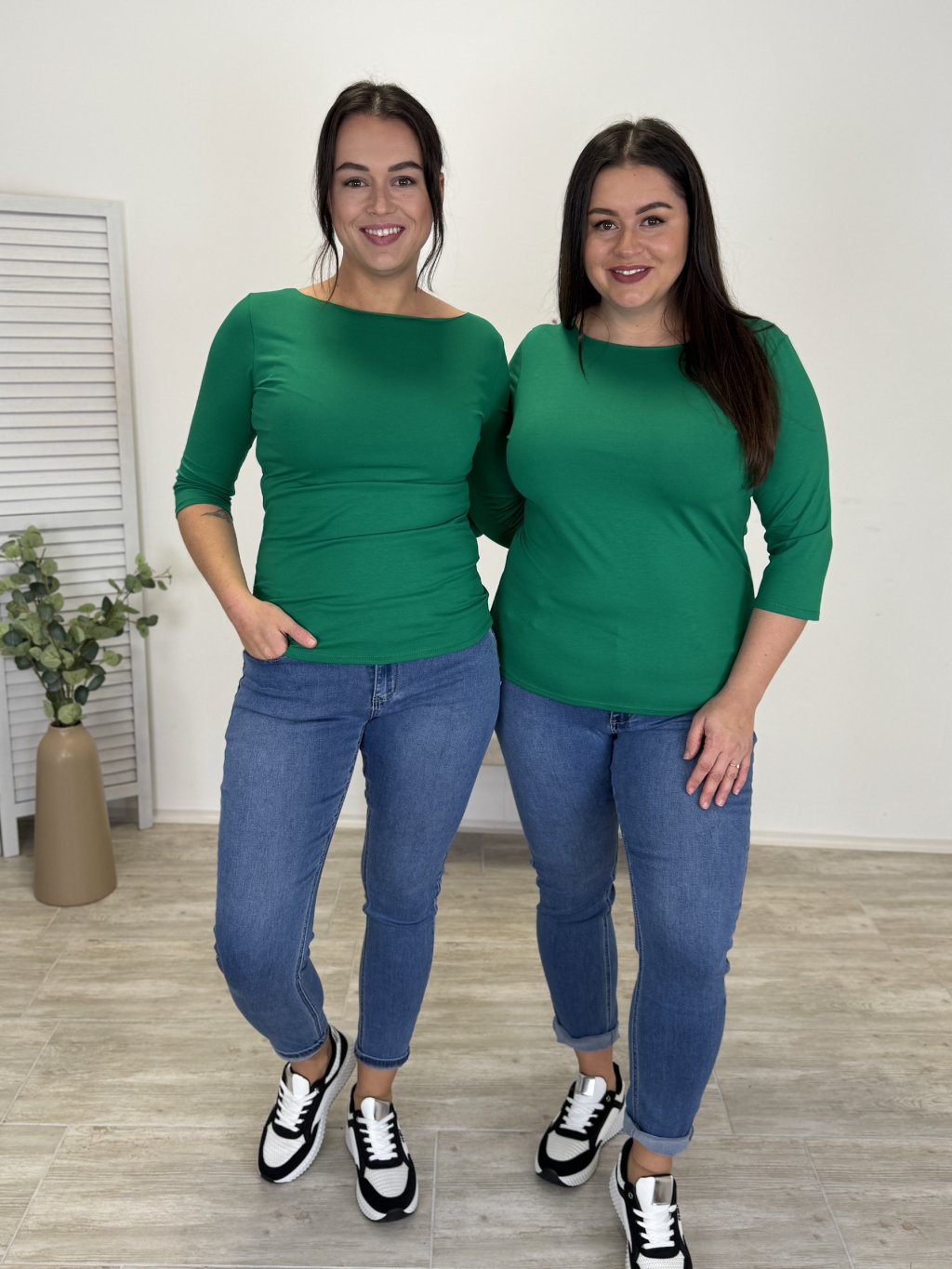 Anet běžně nosí XL/XXL (spodní díl) a má na sobě 35, měří 175 cm.