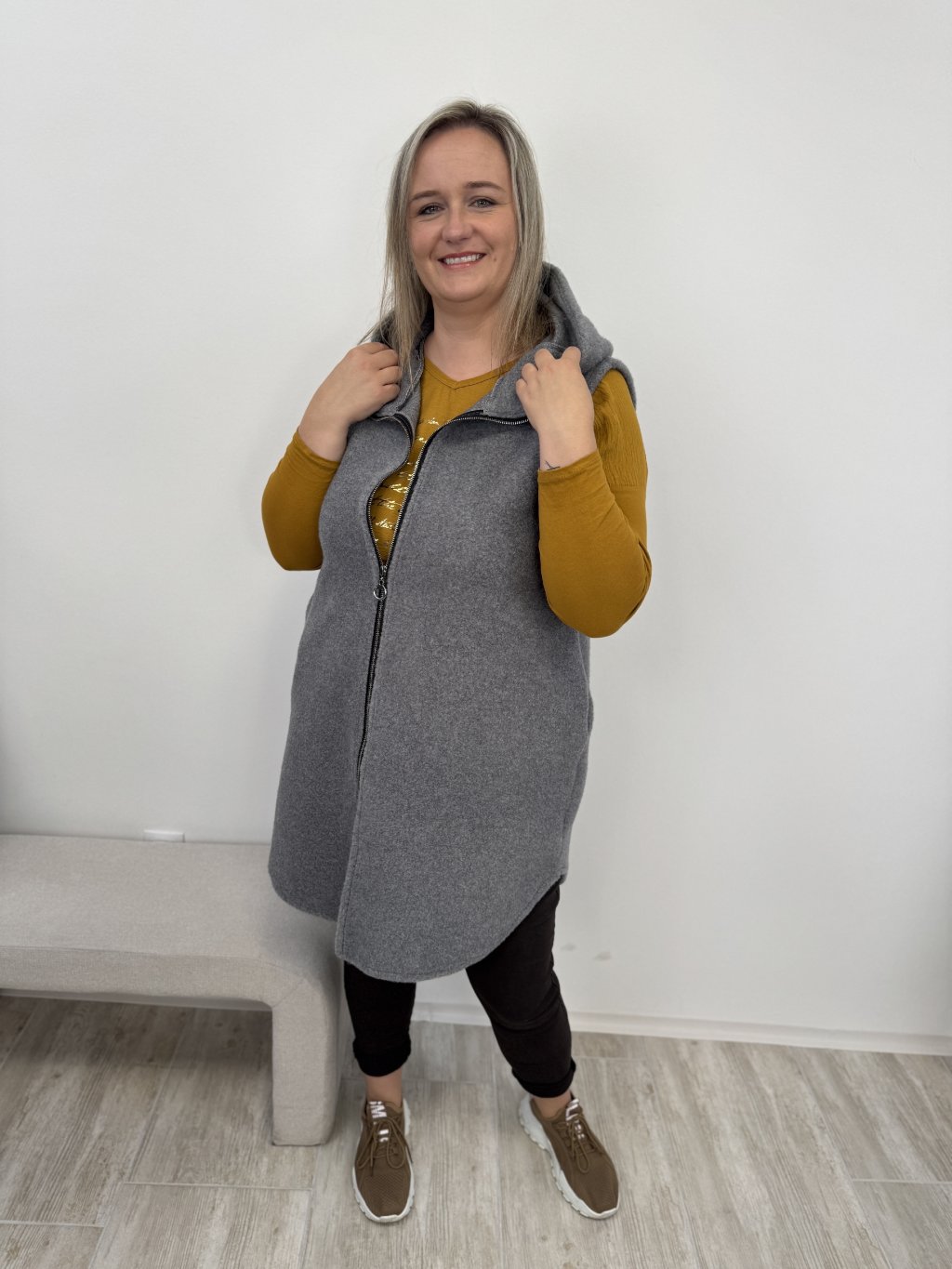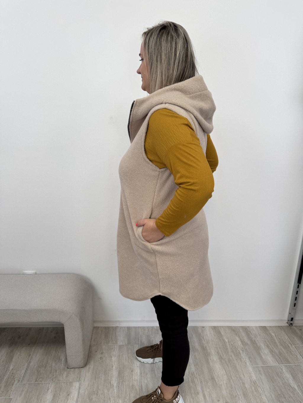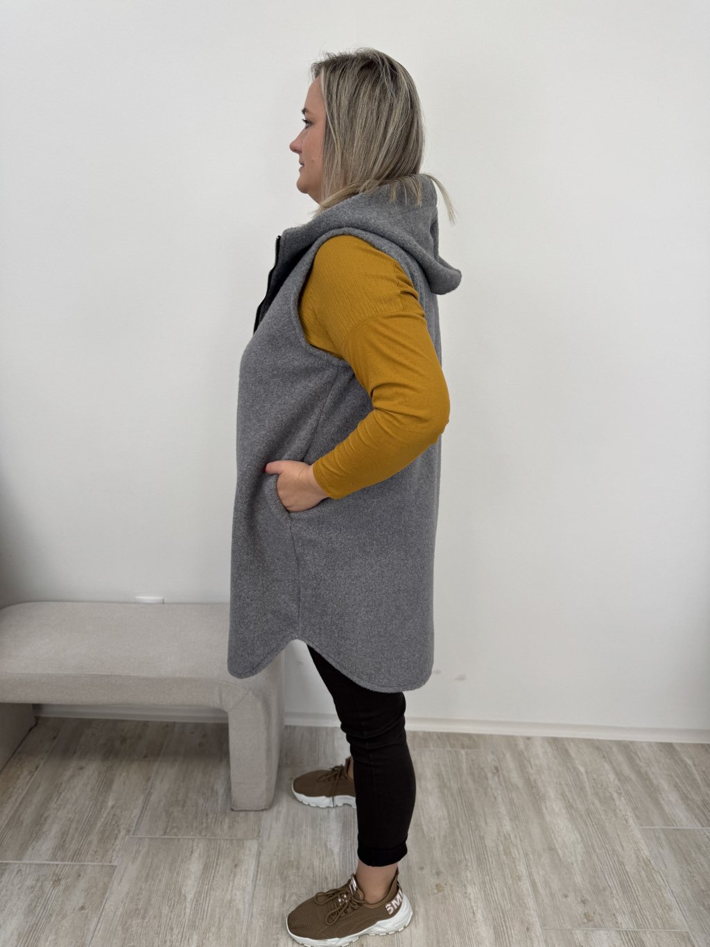•Dlouhá vesta s kapucí