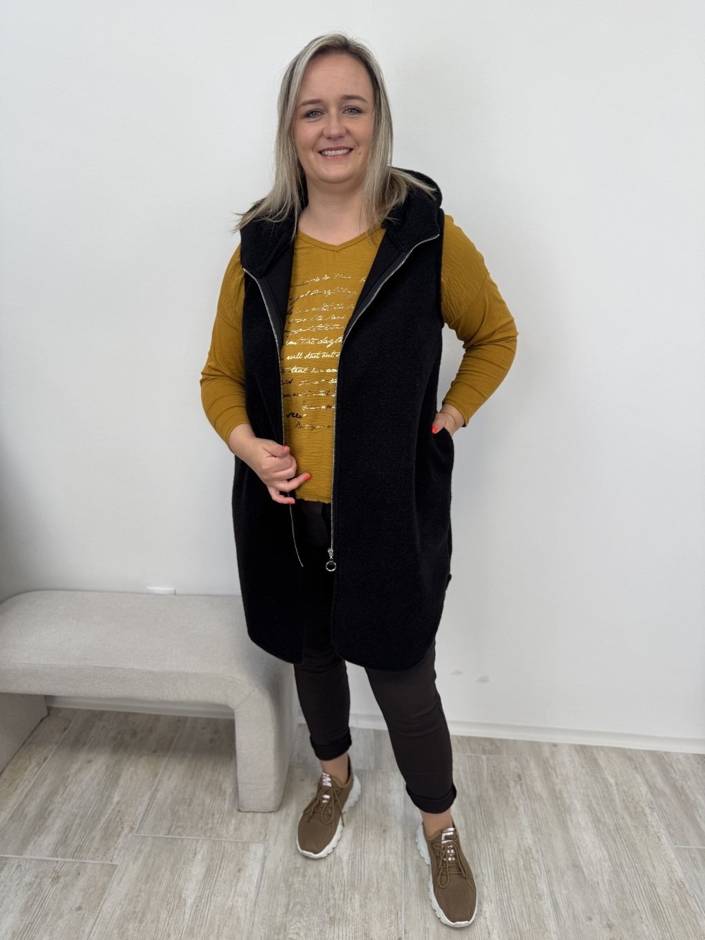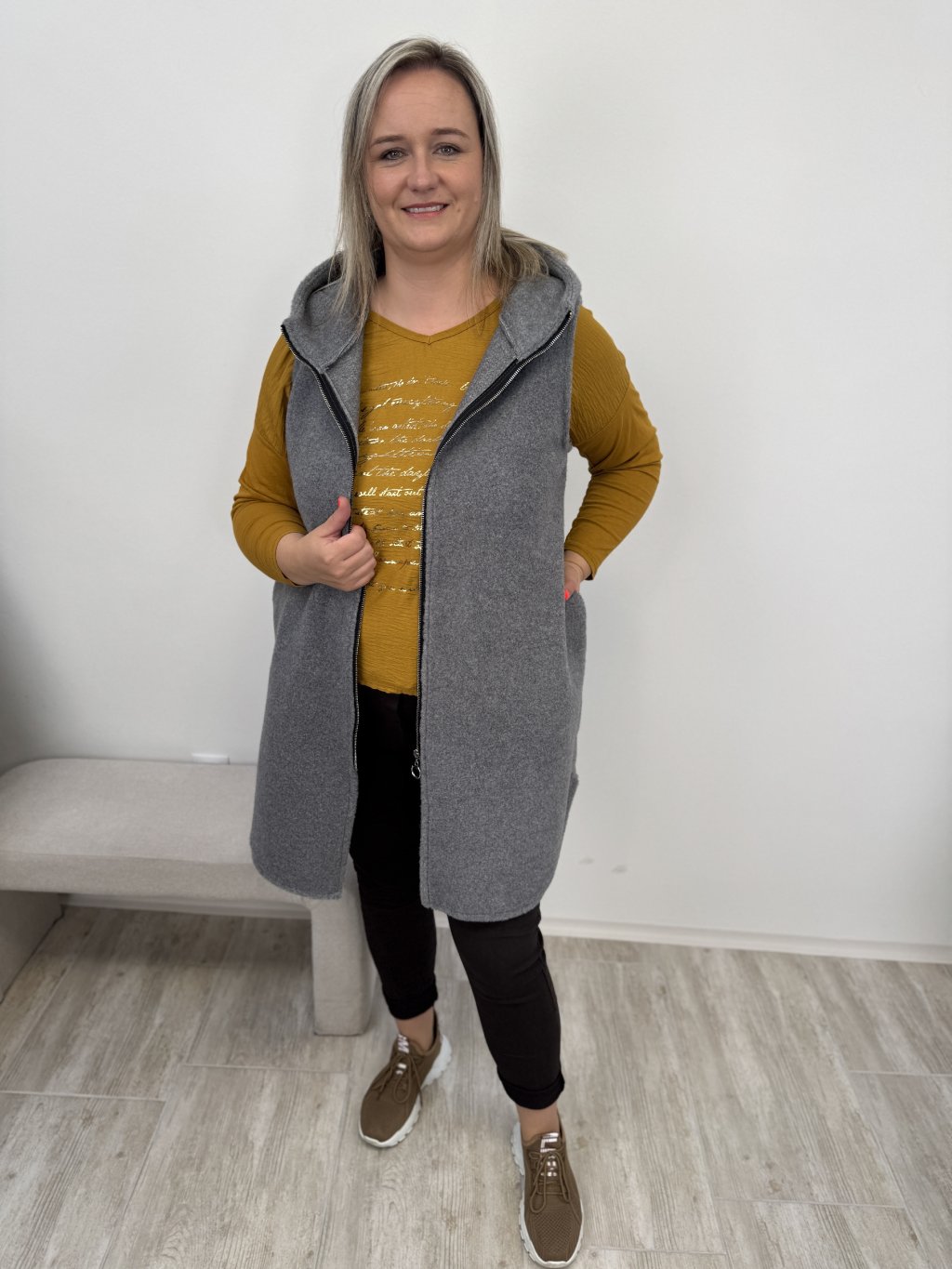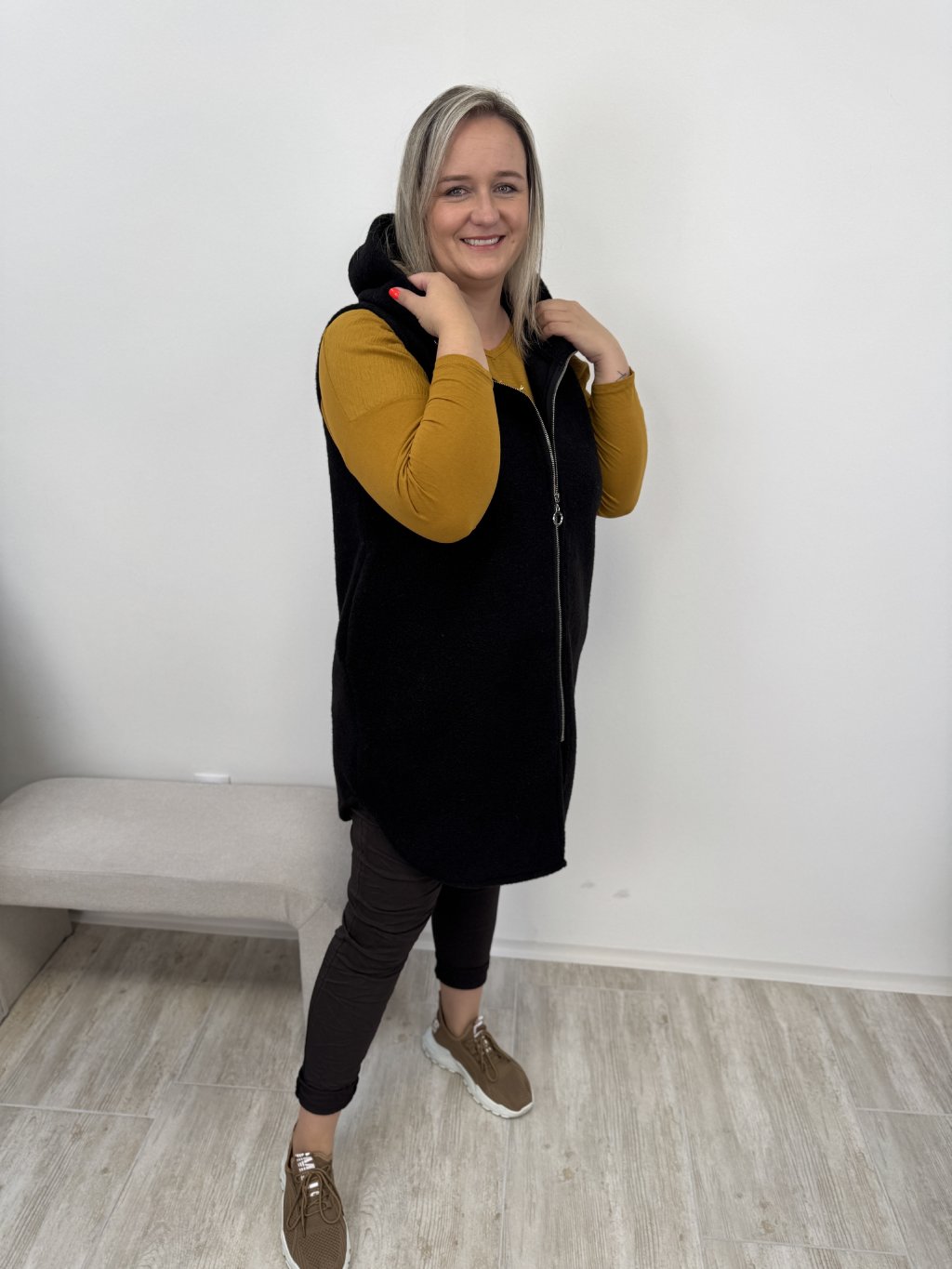 •Dlouhá vesta s kapucí