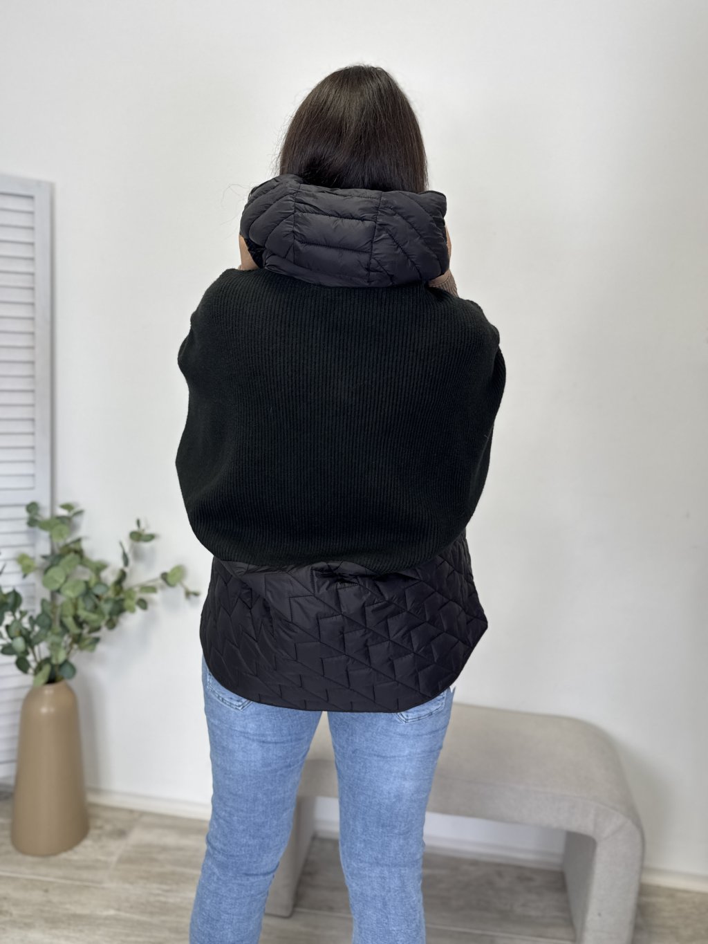 • svetrová vesta kombinovaná s bundovým materiálem