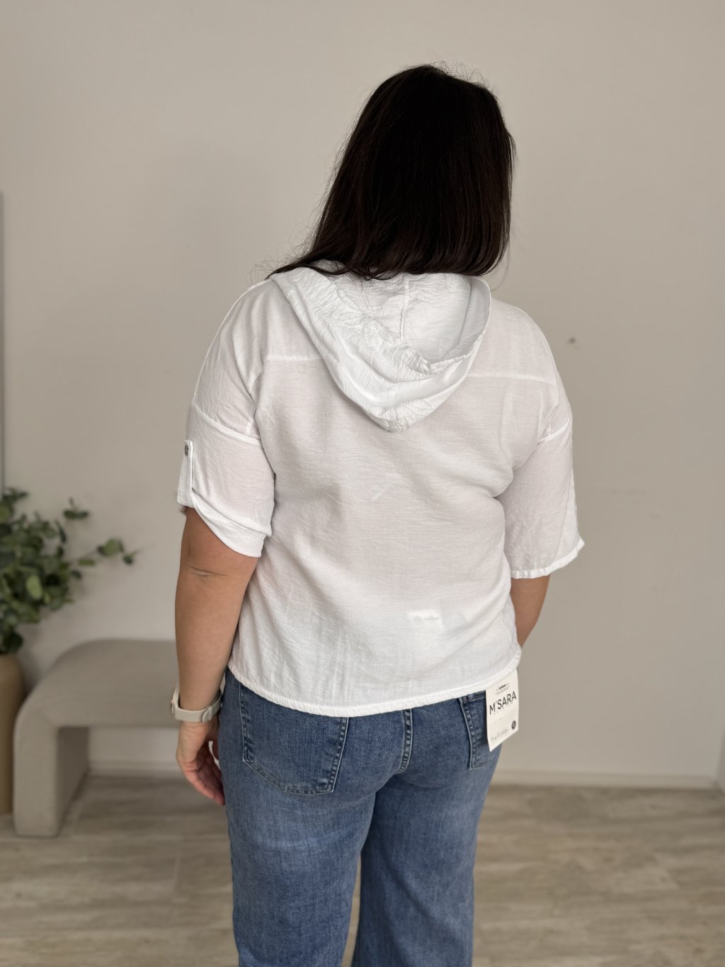 Bavlněná košile se vzorem květů do barvy nabízí pohodlí a hravý vzhled. Rukávky stažené na knoflíček. Kapuce se šňůrkami a celopropínací zapínání dodávají praktičnost, spodní část lze stáhnout na šňůrku pro upravitelný střih. Sedne na M-XL