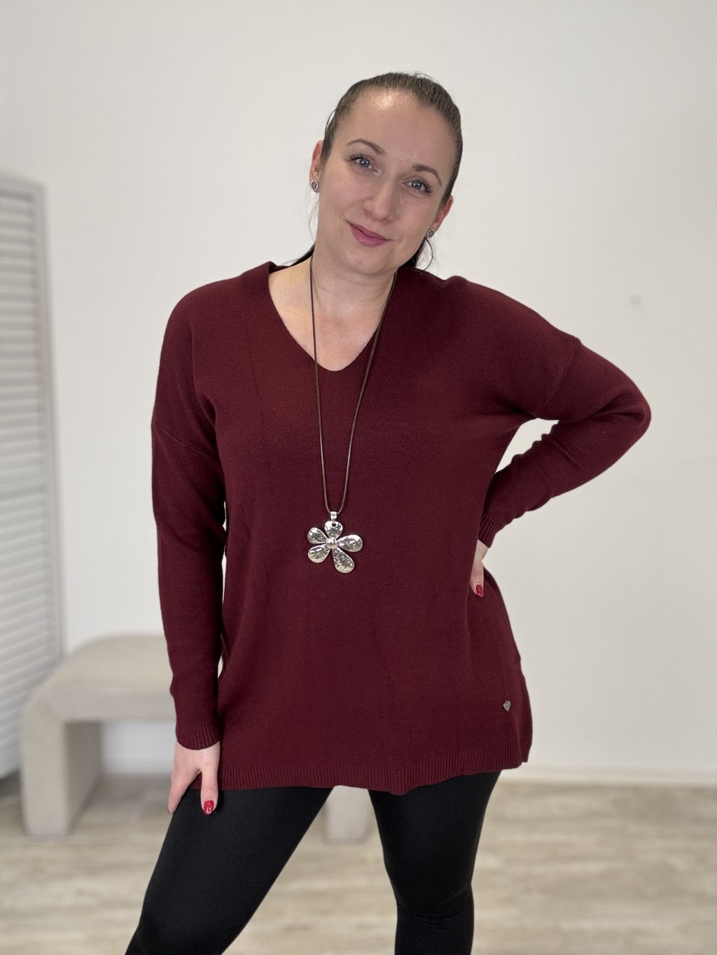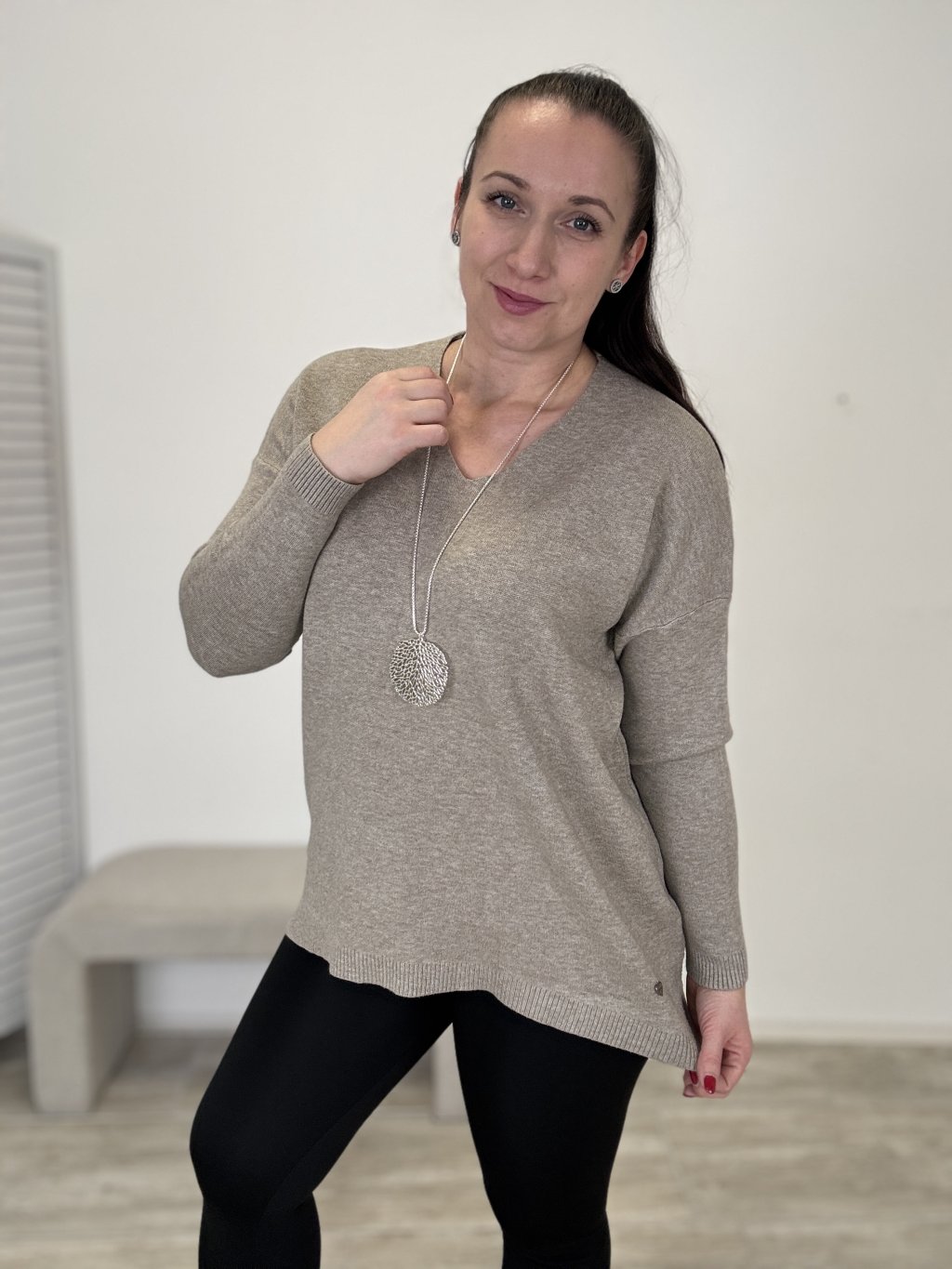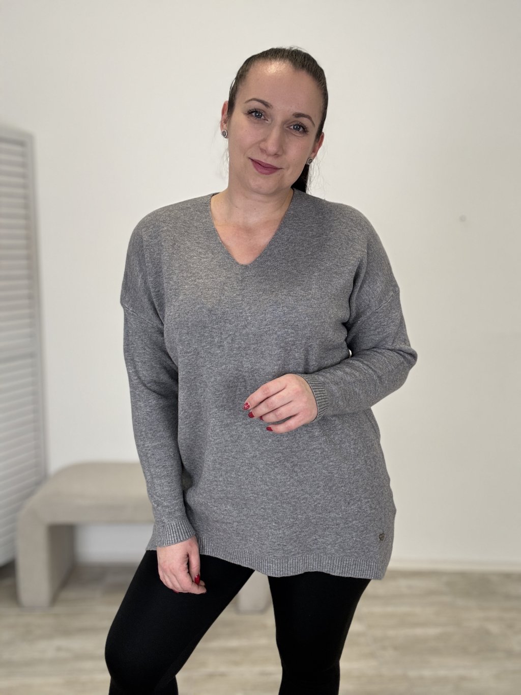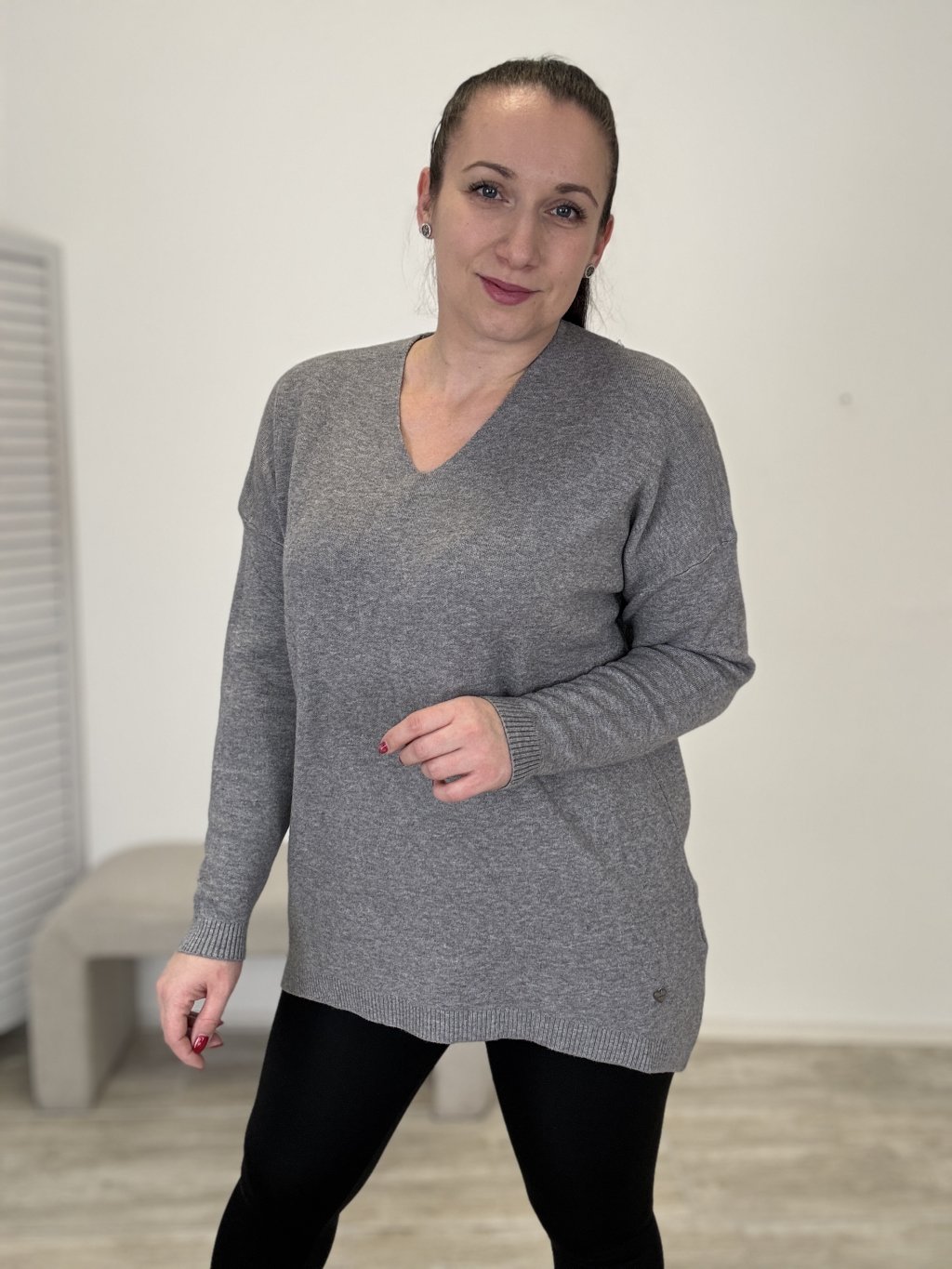 Pohodlný svetr s výstřihem do V