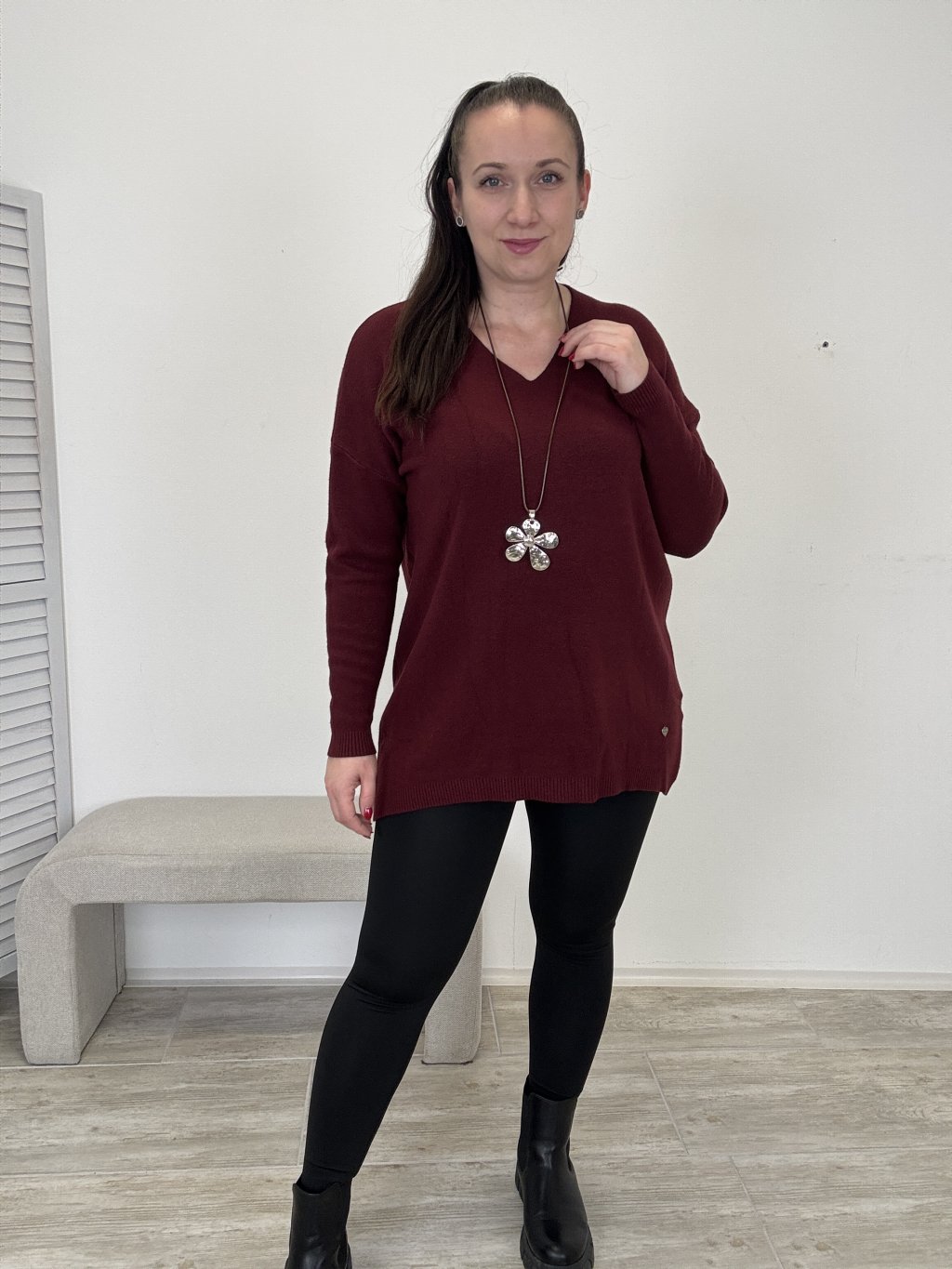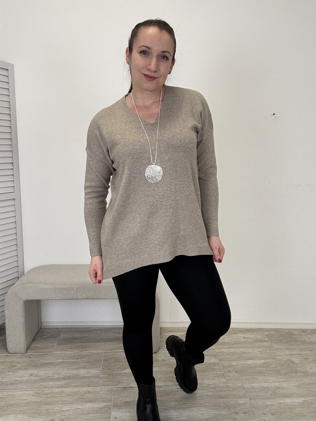 Hodí se ke každodennímu nošení, snadno kombinovatelný s džínami i legínami
