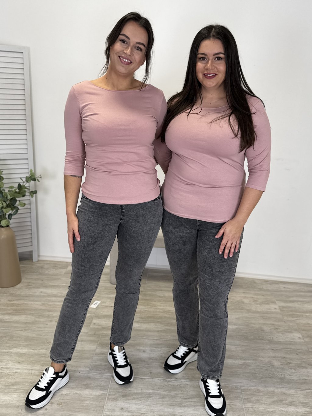 Pro představu Zuzka nosí běžně M a měří 177 cm. Má na sobě S/M.  Anet běžně nosí XL/XXL (spodní díl) a měří 175 cm. Na sobě má XL/XXL