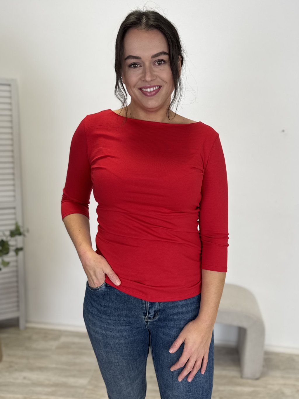 Bavlněné tričko s 3/4 rukávem a lodičkovým výstřihem je oblíbený basic kousek, který ve skříni nezůstane ležet. Jednoduchý střih z něj dělá základ šatníku, po kterém sáhneš znovu a znovu.